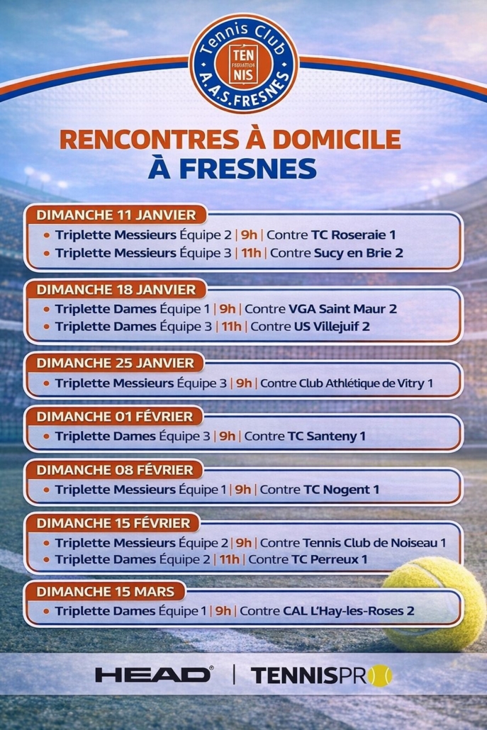 Calendrier des triplettes jouées à domicile